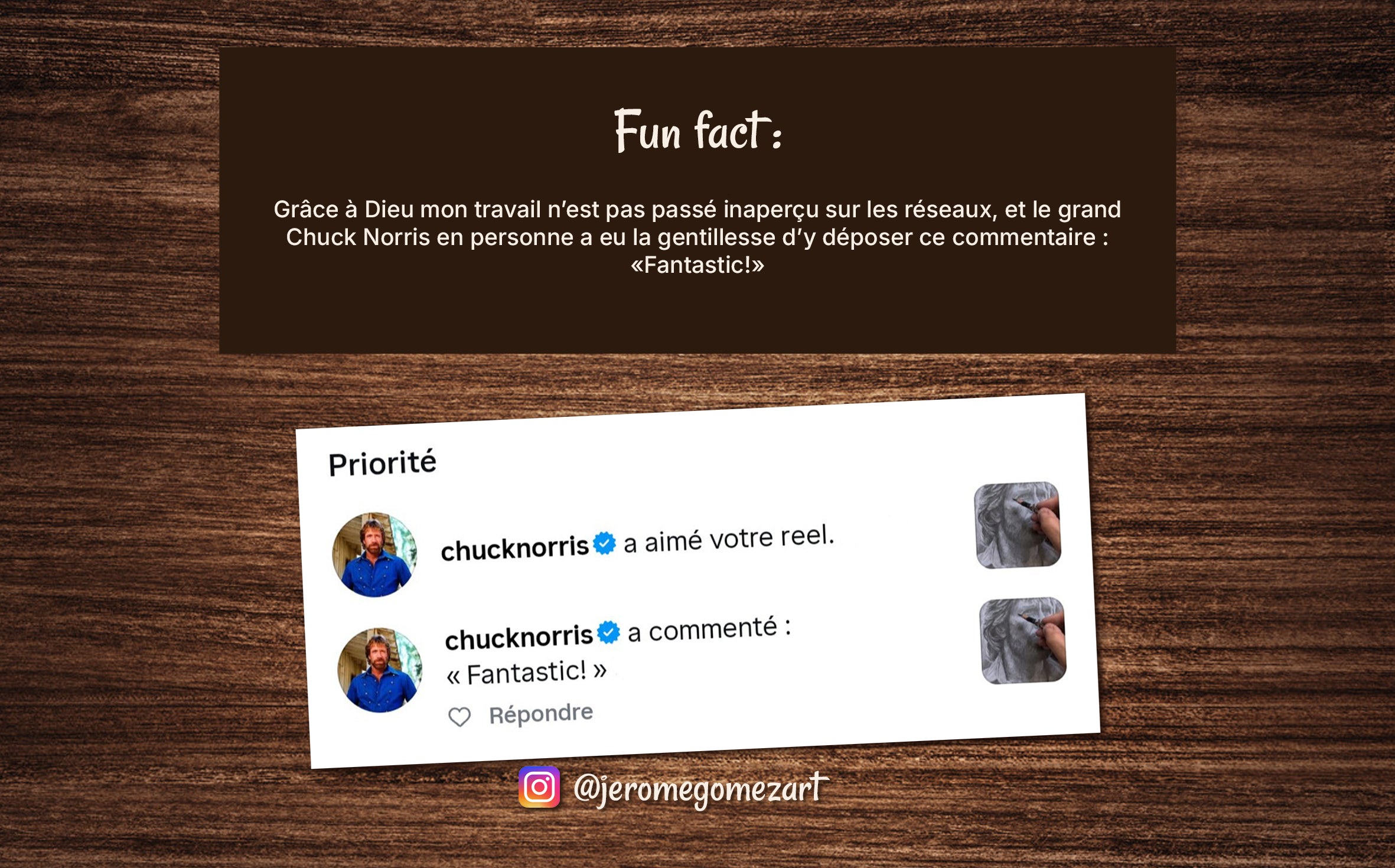 Passionné par le dessin depuis l'enfance, je cherche à capturer l’histoire, l’émotion et l’ambiance derrière chaque visage. J’explore l’univers de la pop culture à travers mes portraits, mêlant réalisme, sensibilité et une bonne grosse dose de nostalgie.
