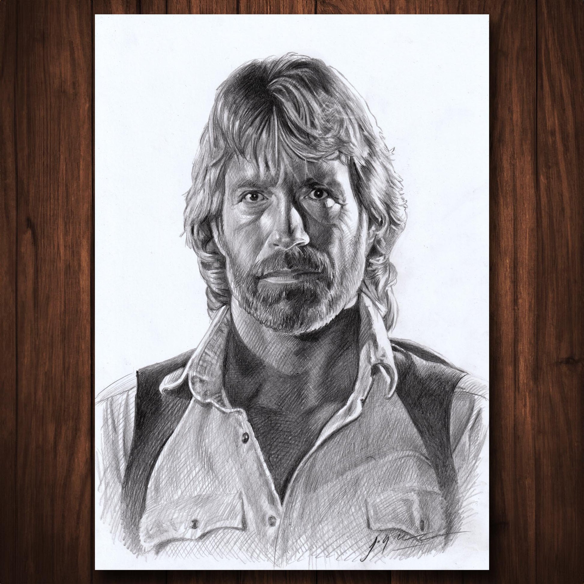 Je préfère vous prévenir tout de suite, ce n’est pas un simple portrait. C’est Chuck Norris dans Invasion USA, capturé à la sueur de mon crayon gris le plus gras ( 8B pour les connaisseurs ) sur un papier aussi lisse qu'une fesse de fonctionnaire. Chaque trait, chaque ombre est une menace pour le reste de mes créations, car il veut régner en maître tel un général cinq étoiles fixant l'horizon sur un champ de bataille encore fumant.
